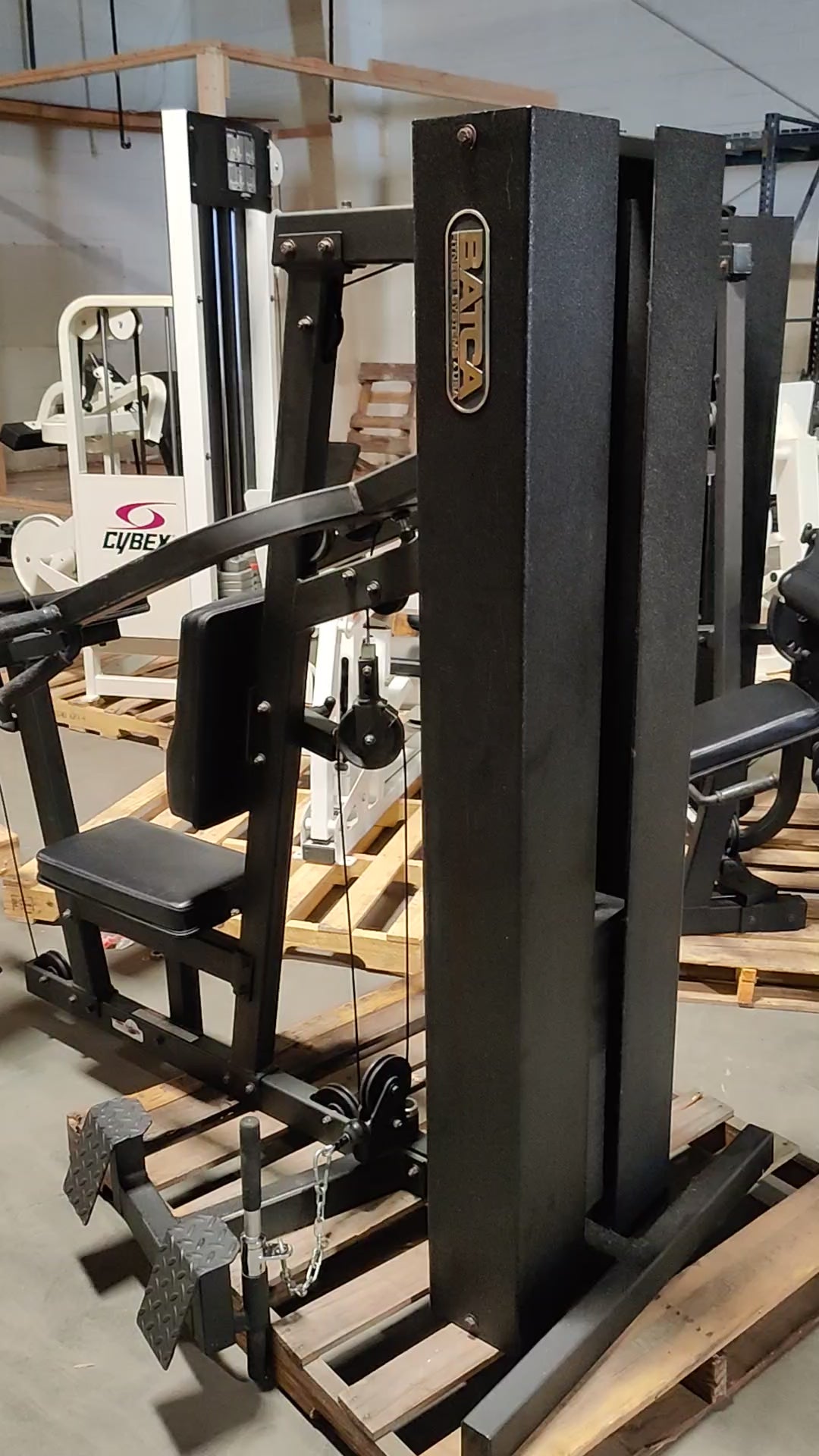 Batca shoulder press with multiple angles, bicep curl, and low row machine. This machine DOES IT ALL! An amazing piece of fitness equipment that gives you an insane amount of versatility in a compact strength package.