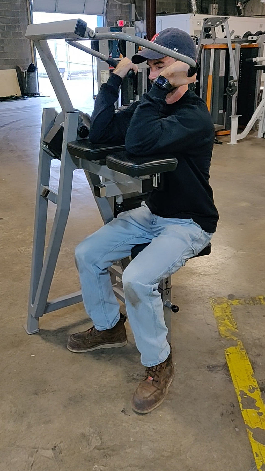 The ergonomic seat and angled arm pad position the user perfectly for peak contraction, keeping the shoulders stable and the elbows aligned for a natural curling motion. This alignment minimizes unwanted shoulder involvement while maximizing tension through the biceps brachii and brachialis, ensuring efficient strength gains and balanced muscular development.