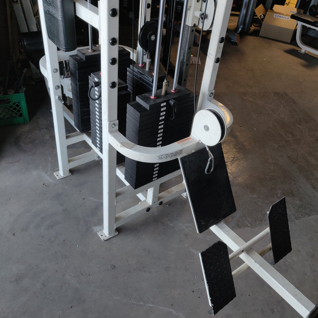 The MJ8's 8-stack design and diverse cable system allow for a complete workout targeting all major muscle groups: chest, back, shoulders, arms, legs, and core. This promotes balanced muscle development and overall strength gains. With the extensive variety of exercises that can be utilized with this multi-station you can tailor your workouts to specific fitness goals, whether it's building muscle, improving strength, or enhancing functional fitness.