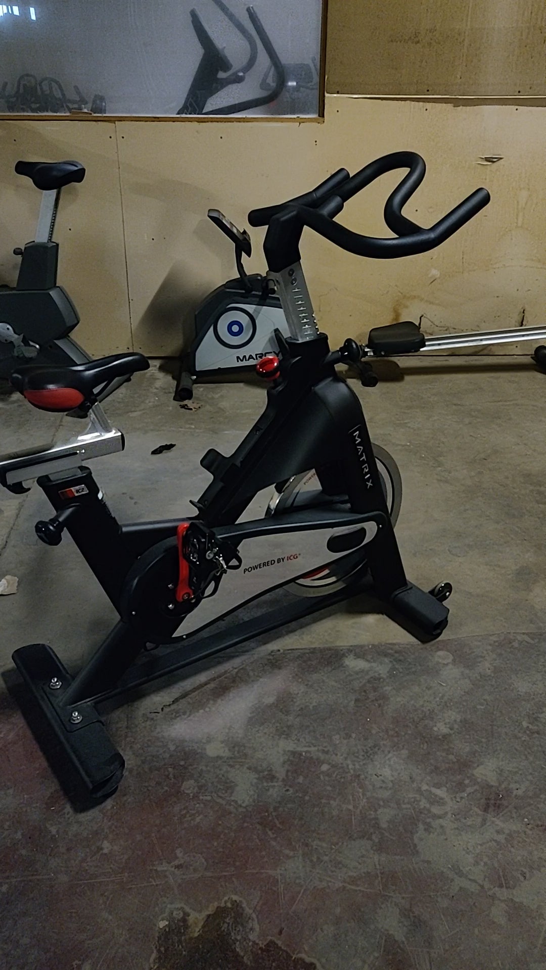 Matrix upright exercise bike with toe-cages for tennis shoes. Get to riding quickly with your own regular walking shoes, and get a highly durable and amazingly simple to use upright exercise bike for your home, studio, or commercial facility.
