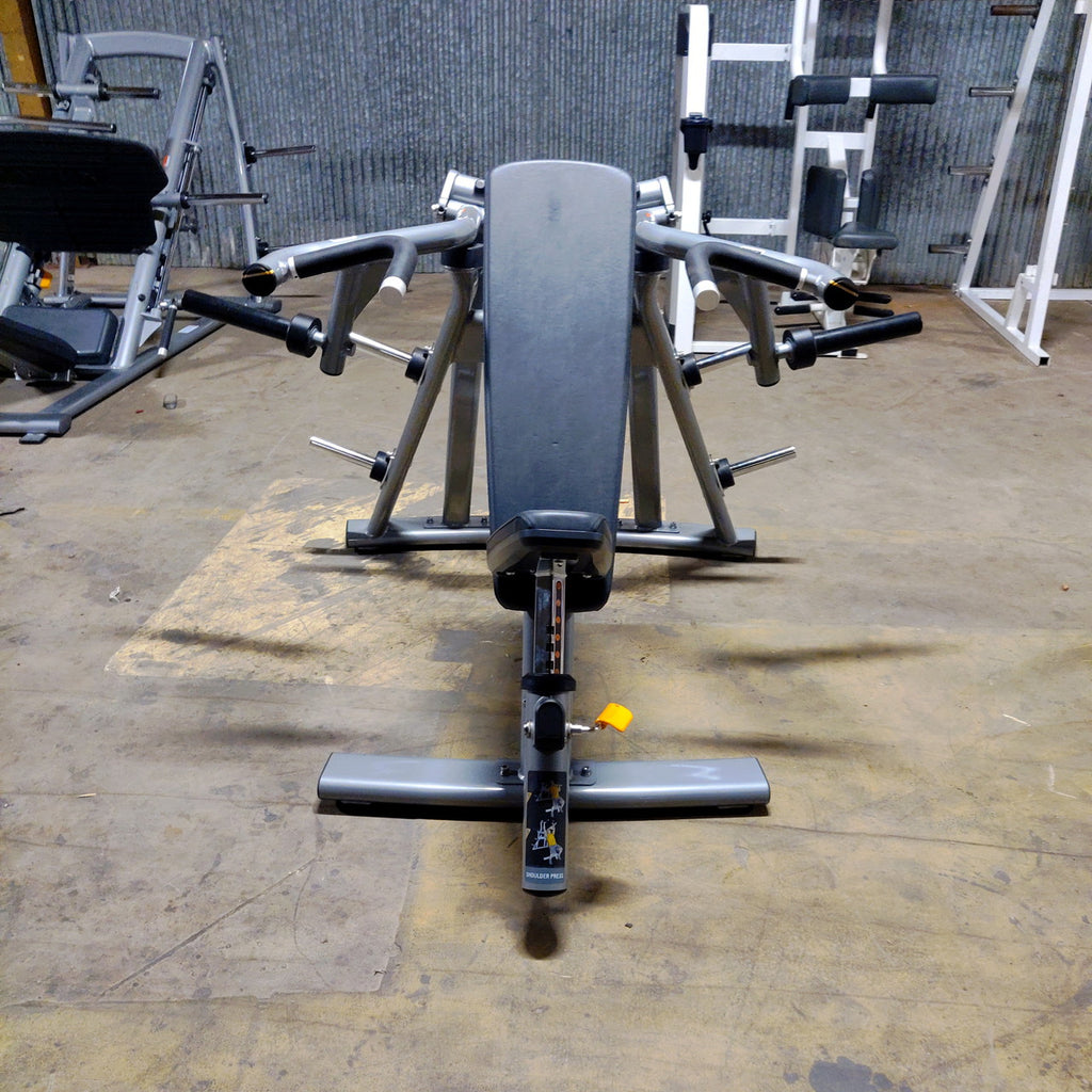 The independent converging press arms mimic natural shoulder motion—ensuring equal strength development on both sides while protecting the joints from unnatural stress. Each press activates the anterior, medial, and posterior deltoids, along with the triceps and upper chest, driving total upper-body power and endurance.