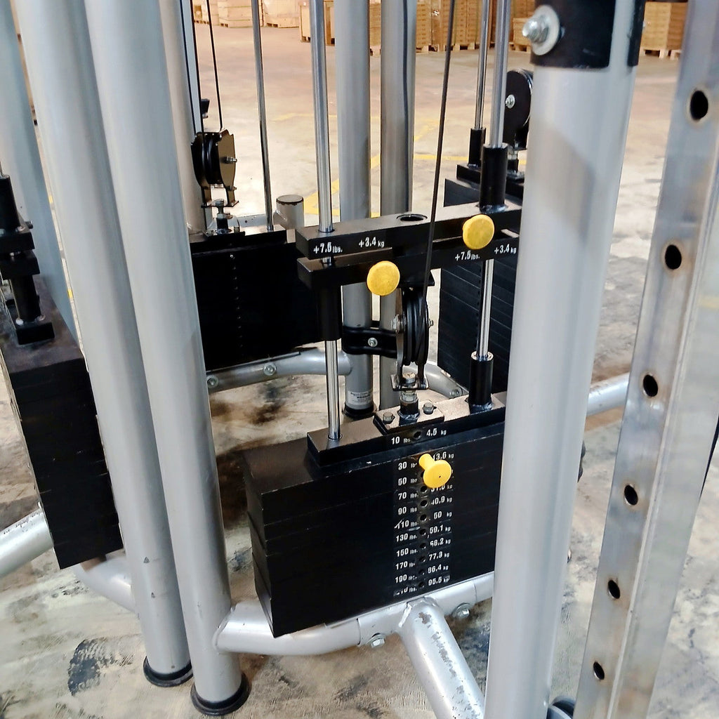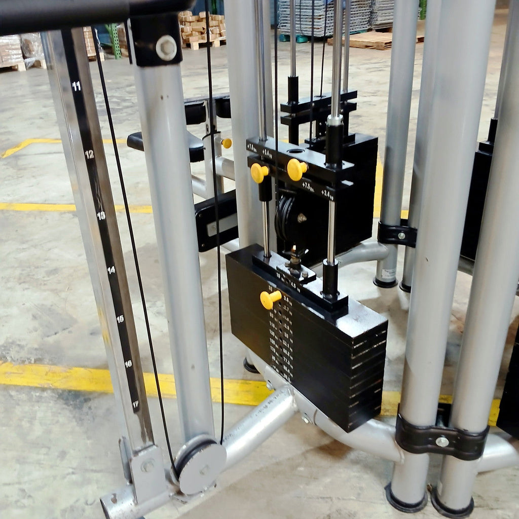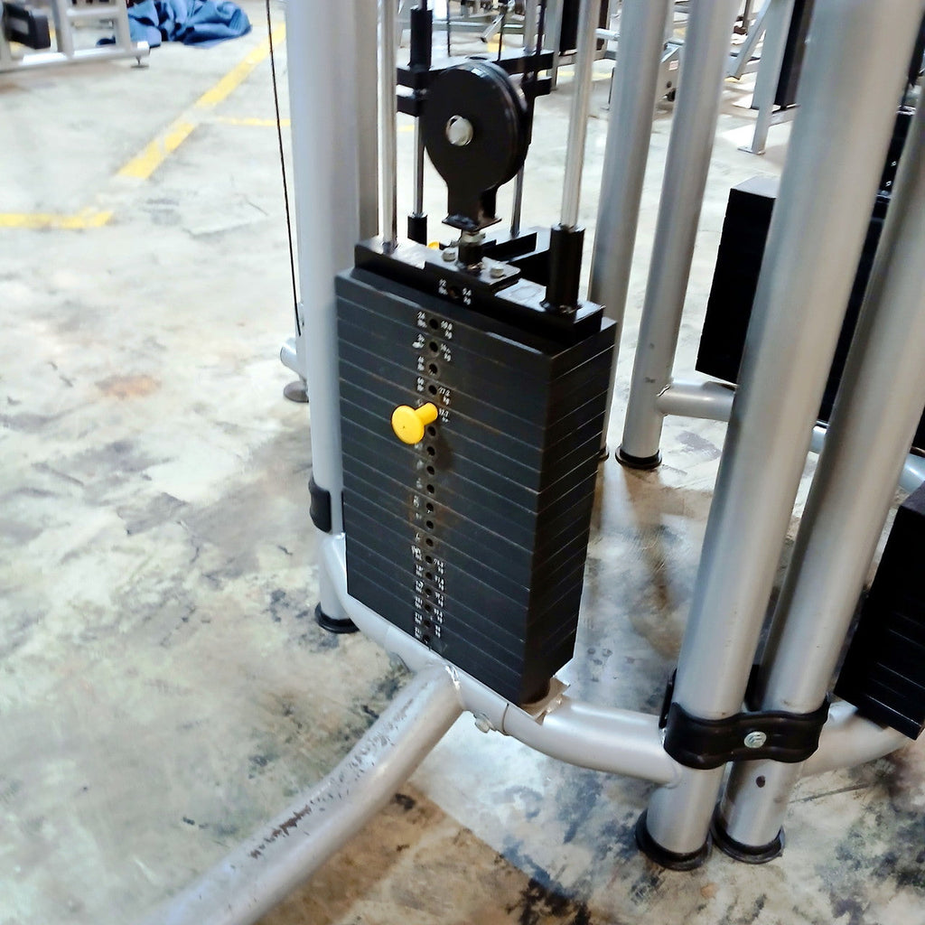 Transform your strength floor with the Classic Magnum 8-Stack Multi-Jungle, a powerhouse system built for versatility, durability, and peak performance. Designed to train every major muscle group in one cohesive footprint, this commercial-grade jungle gym combines eight independent weight stations with an integrated Pec Fly/Rear Delt module—offering both individual and group training options in a single, space-efficient unit.