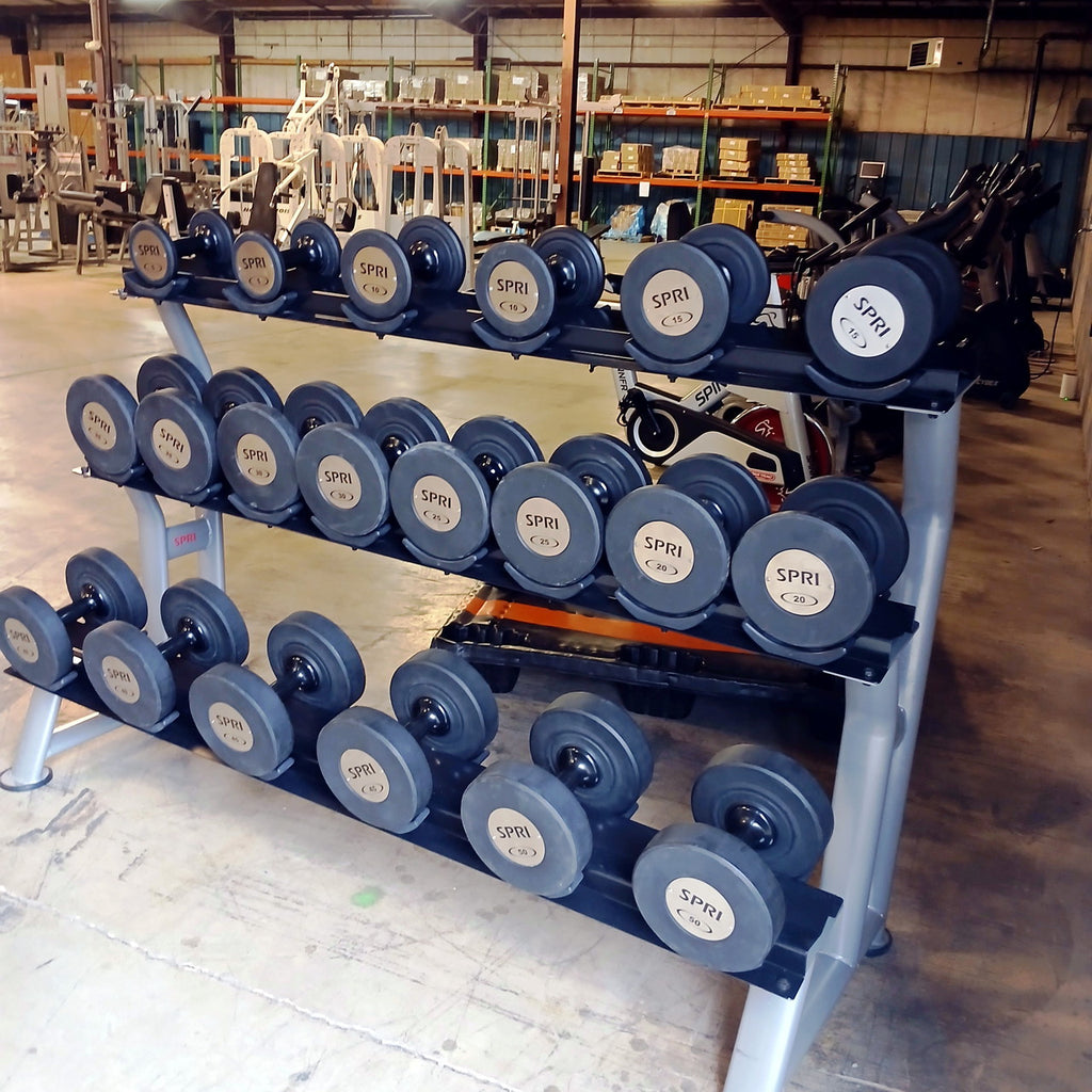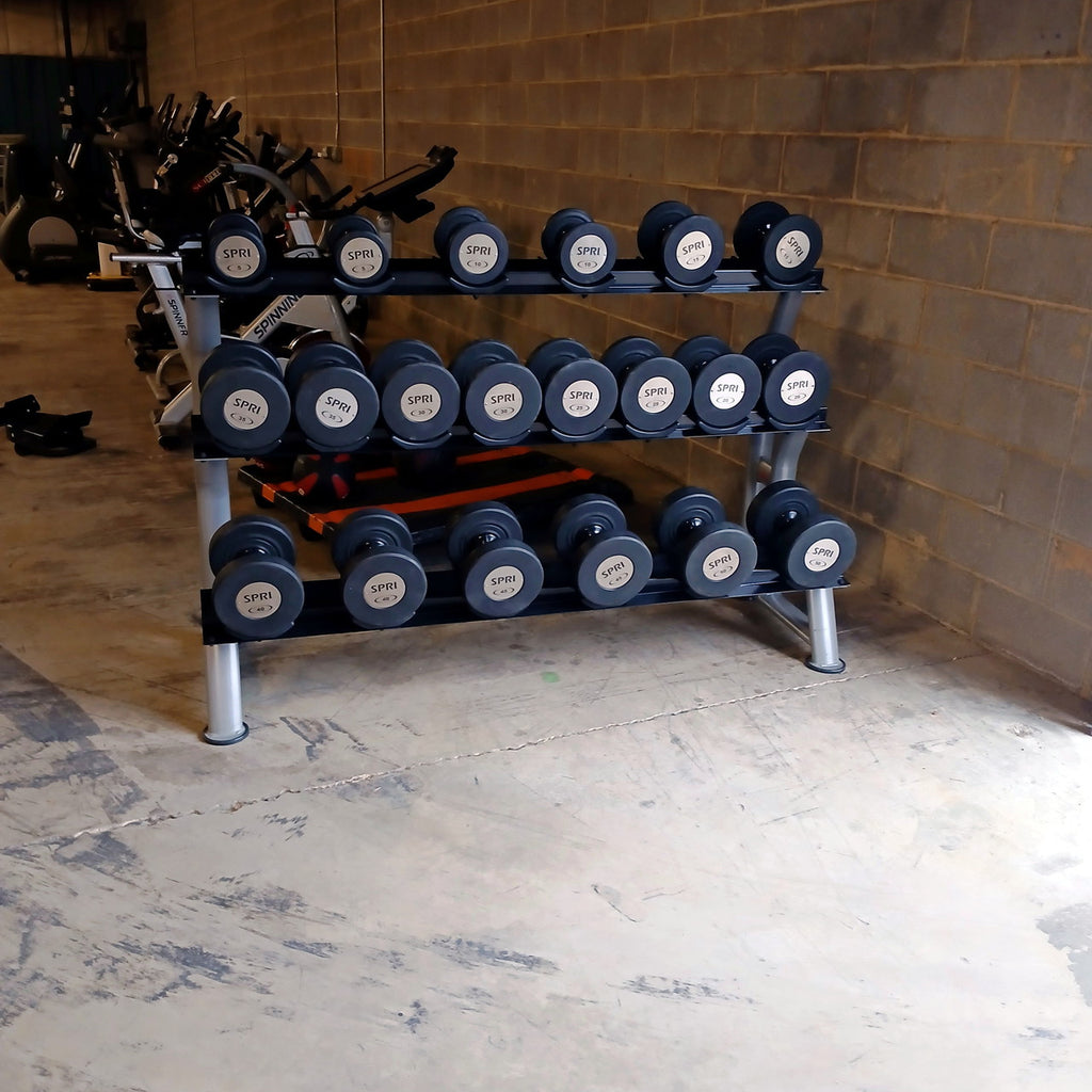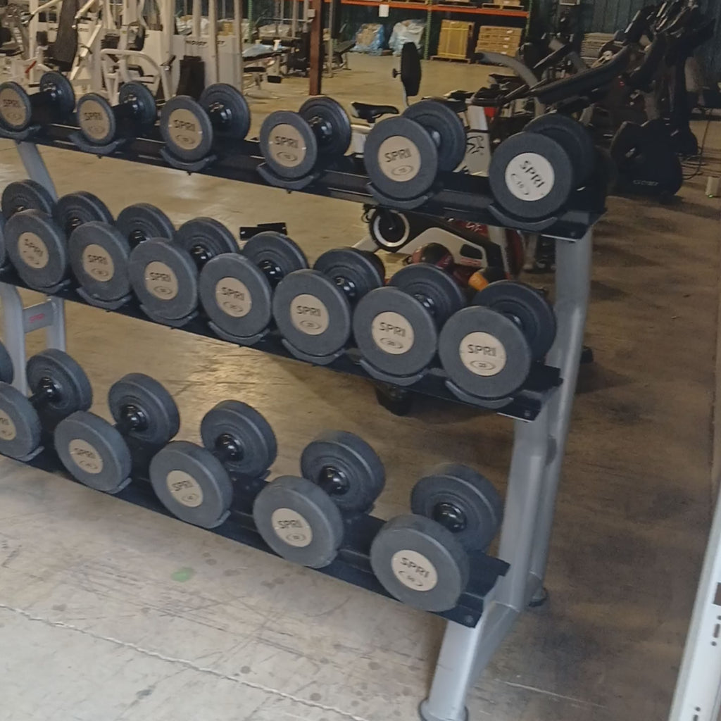 Included is a Three-Tier Saddle Rack, built to keep your entire dumbbell set organized, protected, and easy to access. Its saddle-style cradles securely hold each dumbbell in place, preventing rolling and preserving the urethane finish while maintaining a clean, professional layout. Perfect for home gyms, studios, and commercial fitness centers, this rack-and-dumbbell package delivers a complete, space-efficient strength training solution that’s built to last.