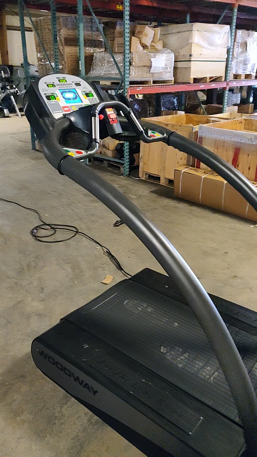 A woodway desmo model treadmill, in good condition, which gives you an excellent cushioned platform to run on without sacrificing comfort and speed. Powered electronically so you can set your own speed, this machine is THE STANDARD in slatted treadmills on the market today. The desmo model is beautiful and built for performance.